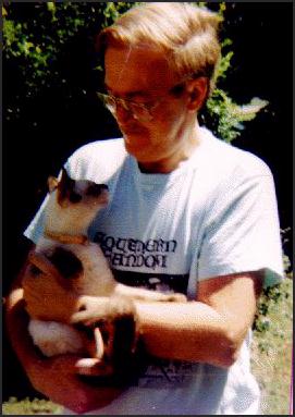 Larry & P.L. don't have human children, but they do have many, many (some say TOO many) furred children. Larry even keeps genealogical records on the cats! Whenever anything goes wrong around the house we always exclaim, "Token did it!" Token was a very special cat, one of two that Larry had for 3 years before he got P.L. He hissed at P.L. for a whole year before he gave in and accepted that she wasn't going away. Token had a very outspoken personality and quite a few Siamese genes: for all that he was a brown tabby he was QUITE the talker! He was 16 years old when he died quietly and quickly of natural causes. We'll miss him, but he continues to live on in our hearts and minds. There'll never be another Token.